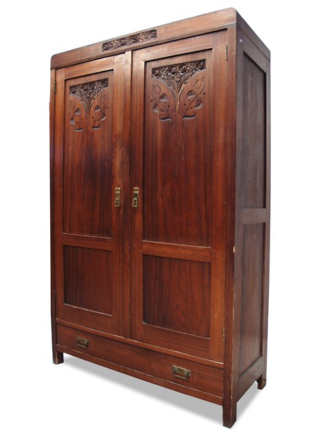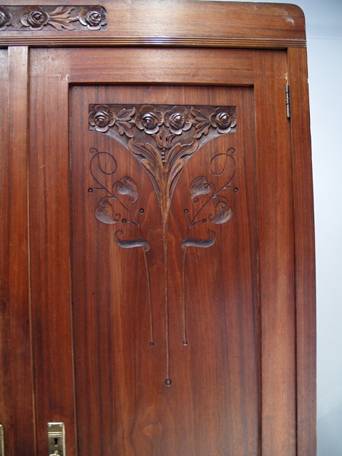 Schrank Rosen beschnitzter Kasten antiker Jugendstil Kleiderschrank