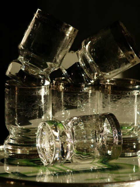 Gläser 6 Stk Murano Schnapsgläser Medici Silberrand Goldrand Kristall schwer