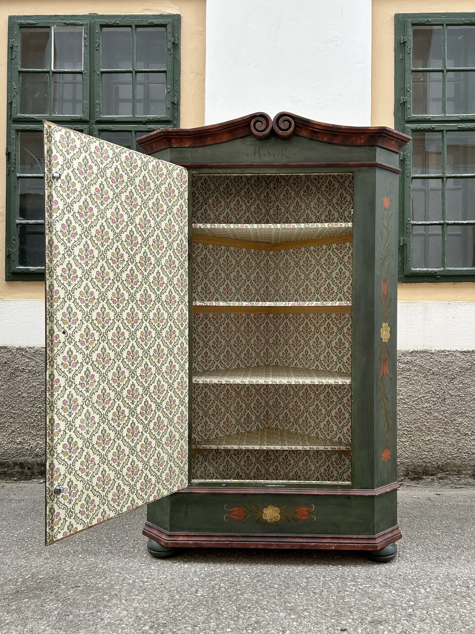 Landhaus Bauernschrank grün bemalt 20. Jhdt. Eckschrank toll