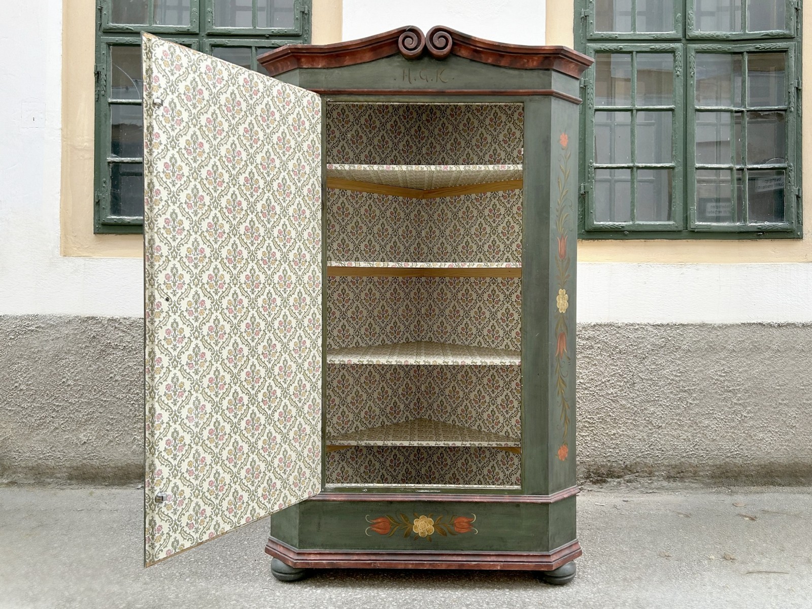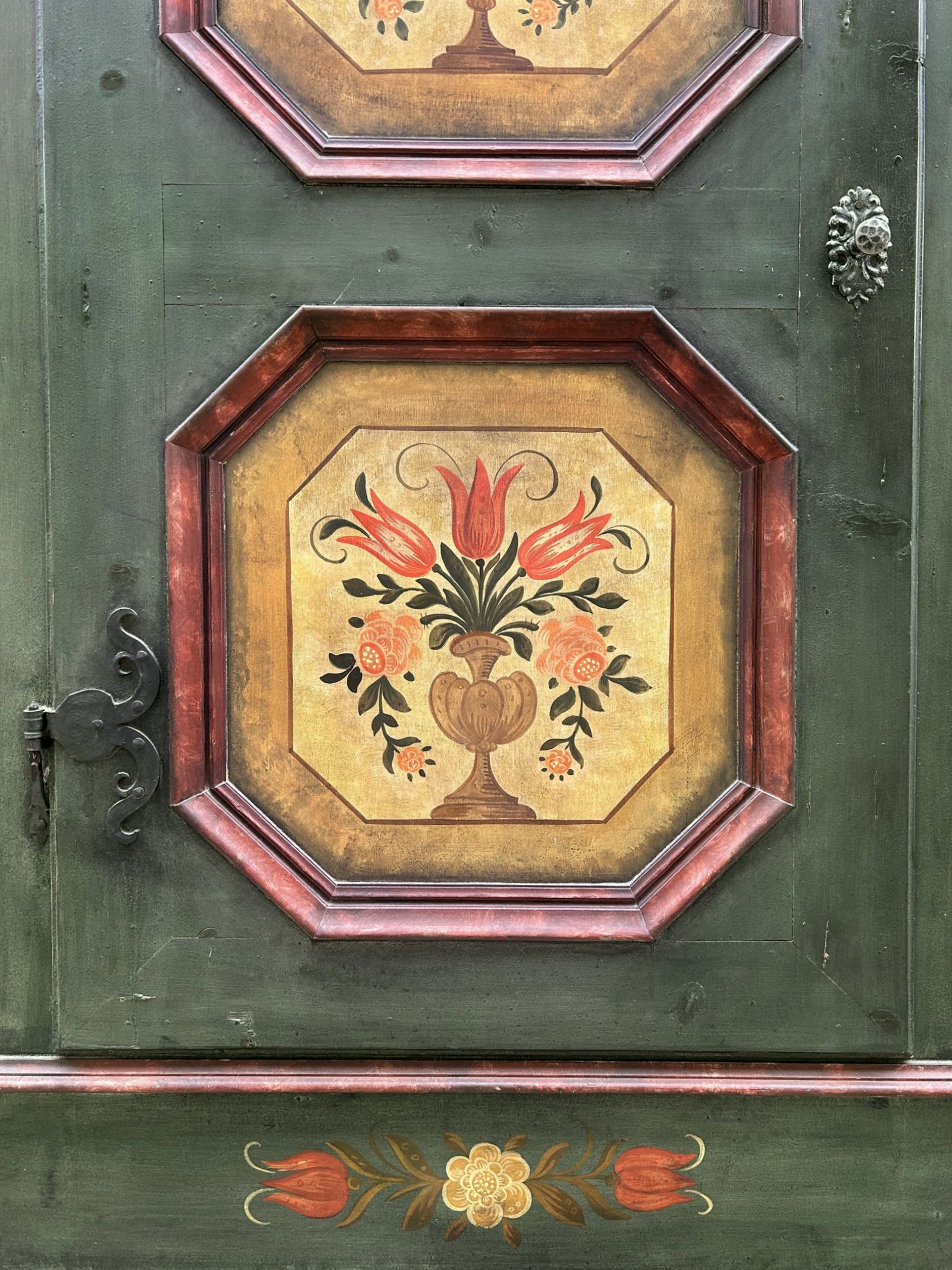 Zauberhafter Bauernschrank mit schöner Handbemalung für Landhausflair.