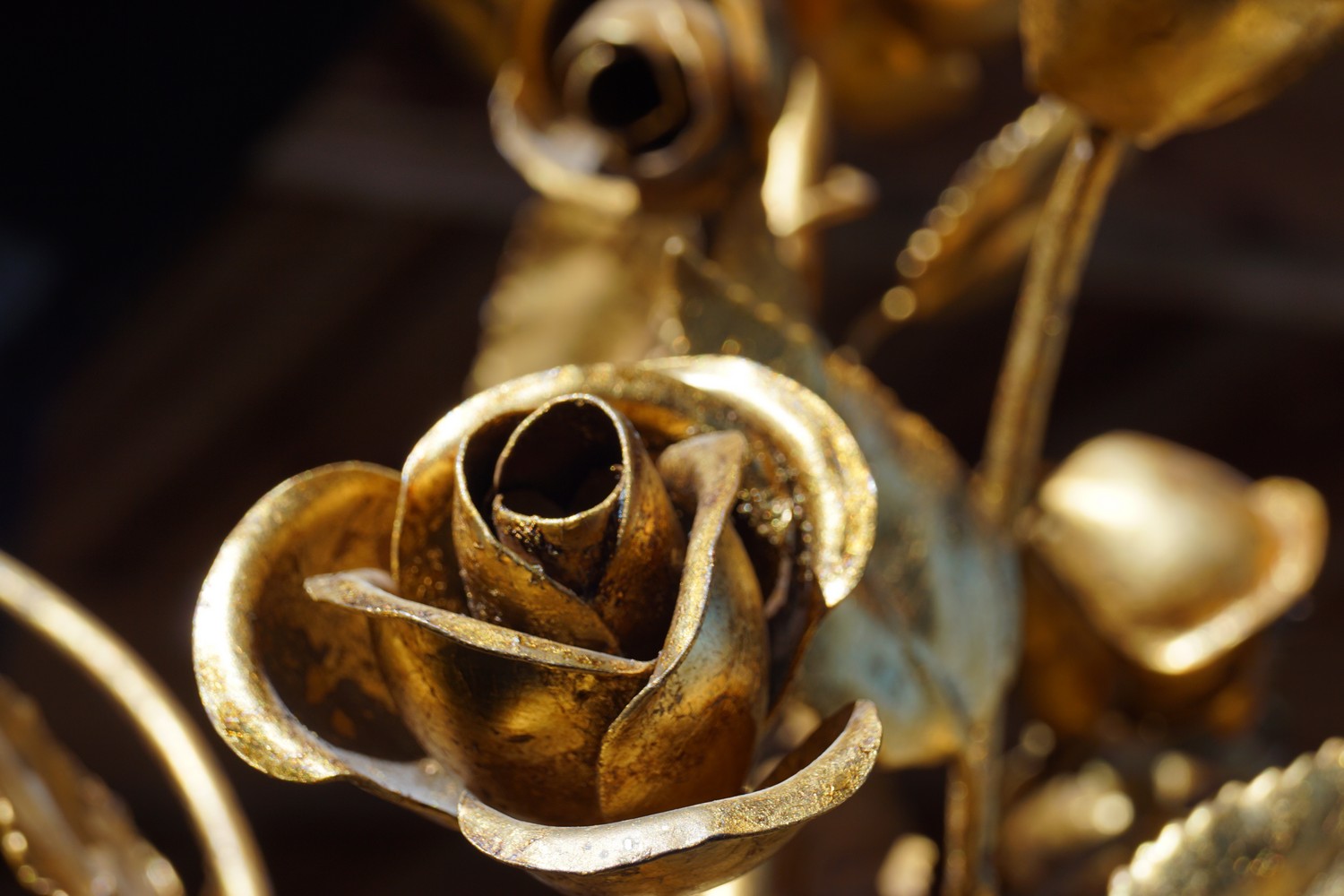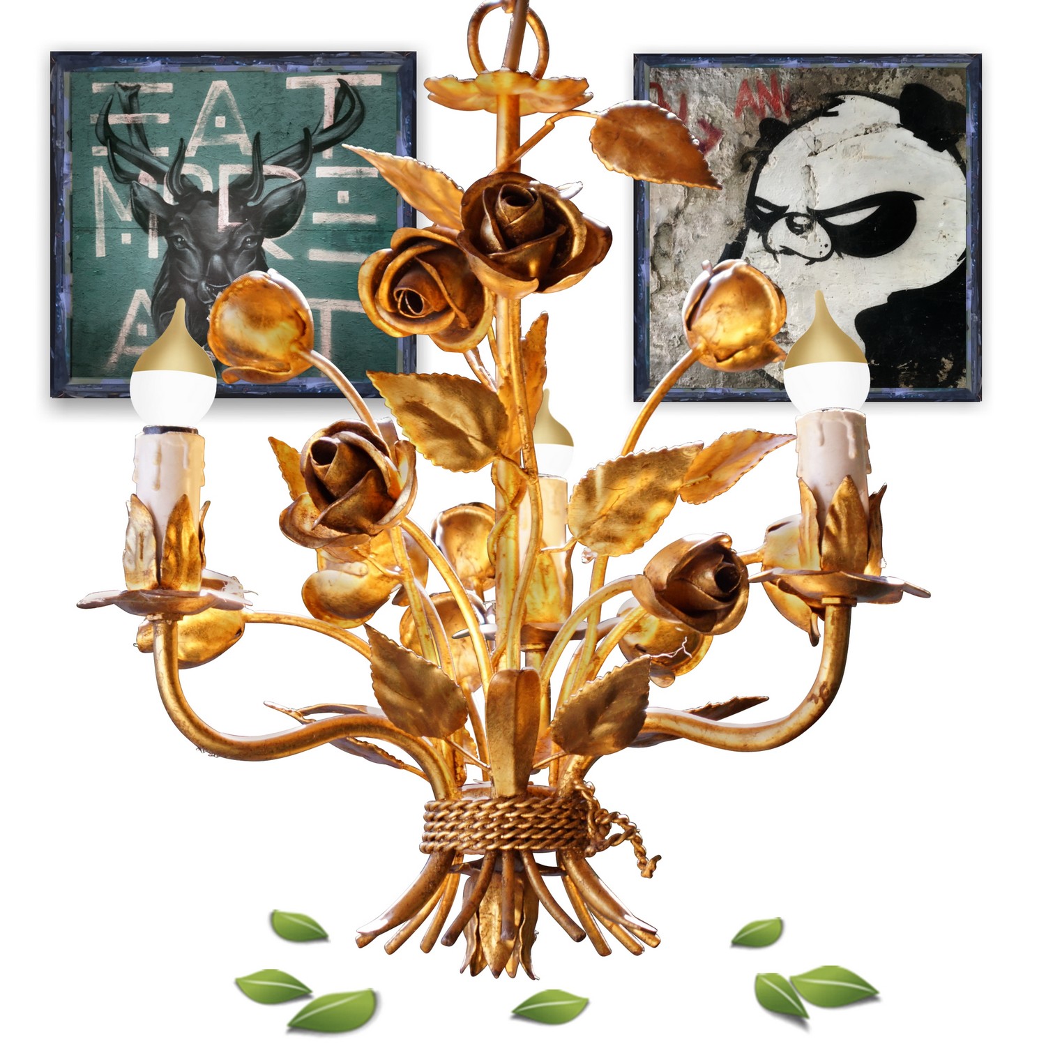 Produktinformationen "Hängelampe Luster goldfarben Rosenblüten Blätter Leuchter dreiflammig"