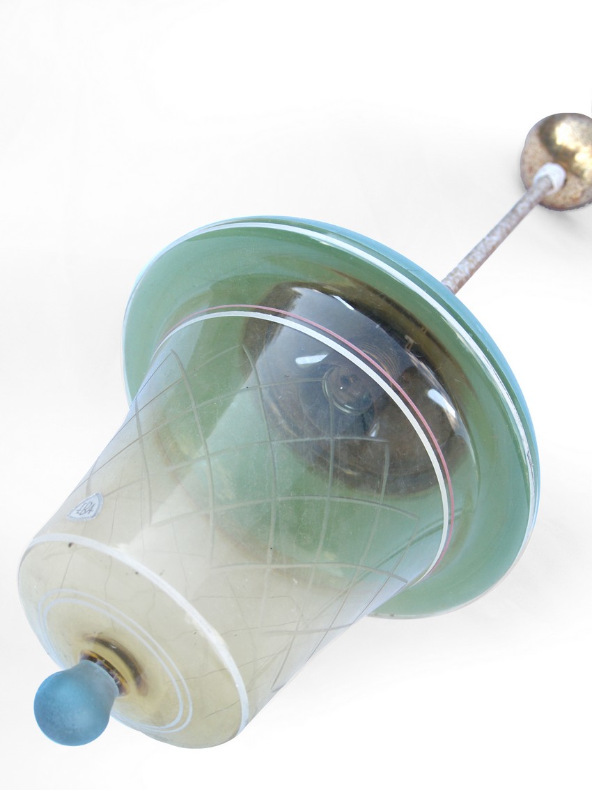 Hängelampe 50er-Jahre Vintage Rockabilly Glas grün-blau Lampe