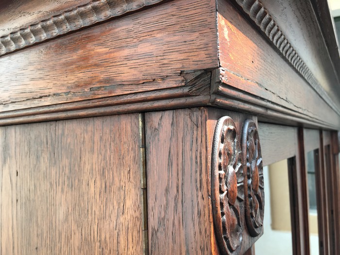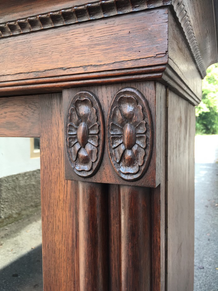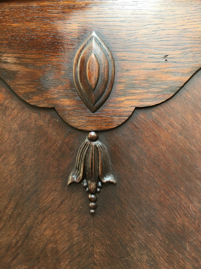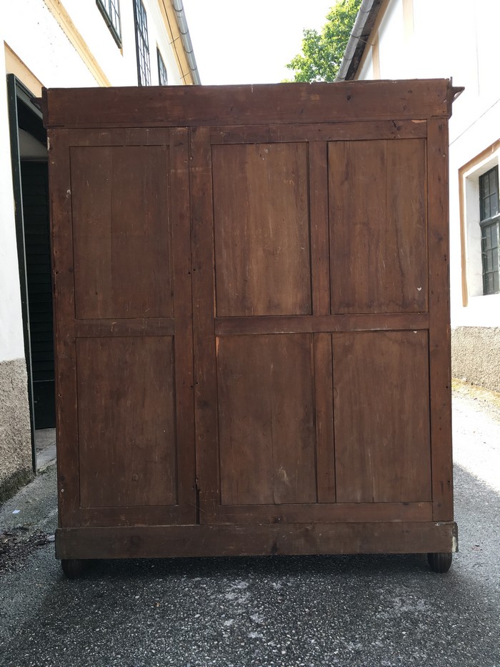 Antiker Schrank - großes Gründerzeit Buffet Möbel beschnitzt Antiker Schrank gefertigt um 1880 mit geringen Altersspuren in sehr schönem, sauberem und sofort stellbarem Zustand. Das antike Buffet zeigt sich in 2-teiliger Fertigung, bestehend aus Unter- und Oberteil, wodurch es sich einfacher transportieren lässt. Lediglich an einer oberen Außenkante fehlt ein kleines Stück Leiste ansonsten ist der antike Schrank recht hübsch und bietet hinter vier Laden und vier Flügeltüren geräumigen Stauraum im Inneren. Beachtenswert sind die Beschläge. Die offenen Bereiche bieten ebenso geräumigen Abstellplatz für alles Erdenkliche - von Bücher bis Porzellan und Sammlerfiguren.Im Gesamten zeigt sich der große Schrank recht ansprechend. Stilkunde Die Bezeichnung für den Stil Art Nouveau lautete im deutschem Sprachraum "Jugendstil". Zeitlich ist dieser Stil von ca. 1885 - 1920 einzuordnen. Typisch für den Jugendstil sind, die Aufgabe von Symmetrien, geschwungene Linien, flächige florale Elemente (Iris, Seerosen, etc.) sowie in der gestaltenden Kunst und Frauenfiguren mit wallendem Haar und Tierdarstellungen. Im Industriezeitalter betätigten sich nun die Künstler auch als Designer von Gebrauchswaren (Möbel, Gläser etc.) und auch als Architekten. Zu den Bekanntesten zählten u. a. Josef Hoffmann, Otto Wagner, Henry van de Velde, Peter Behrens, ...