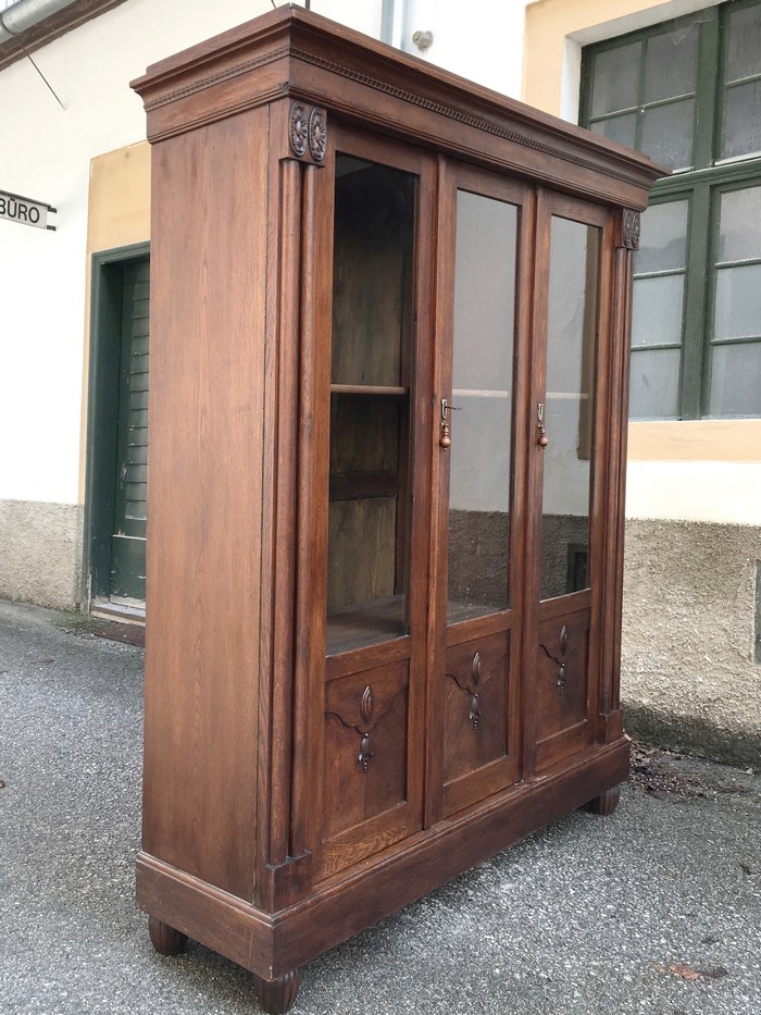 Bücherschrank Vitrinenschrank Schrank Vitrine dreitürig antik