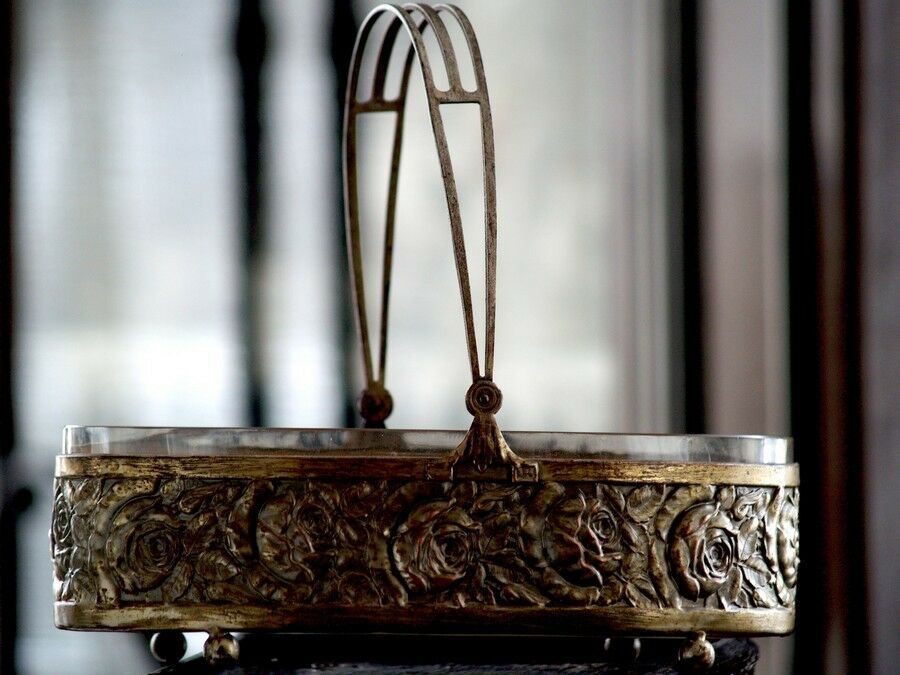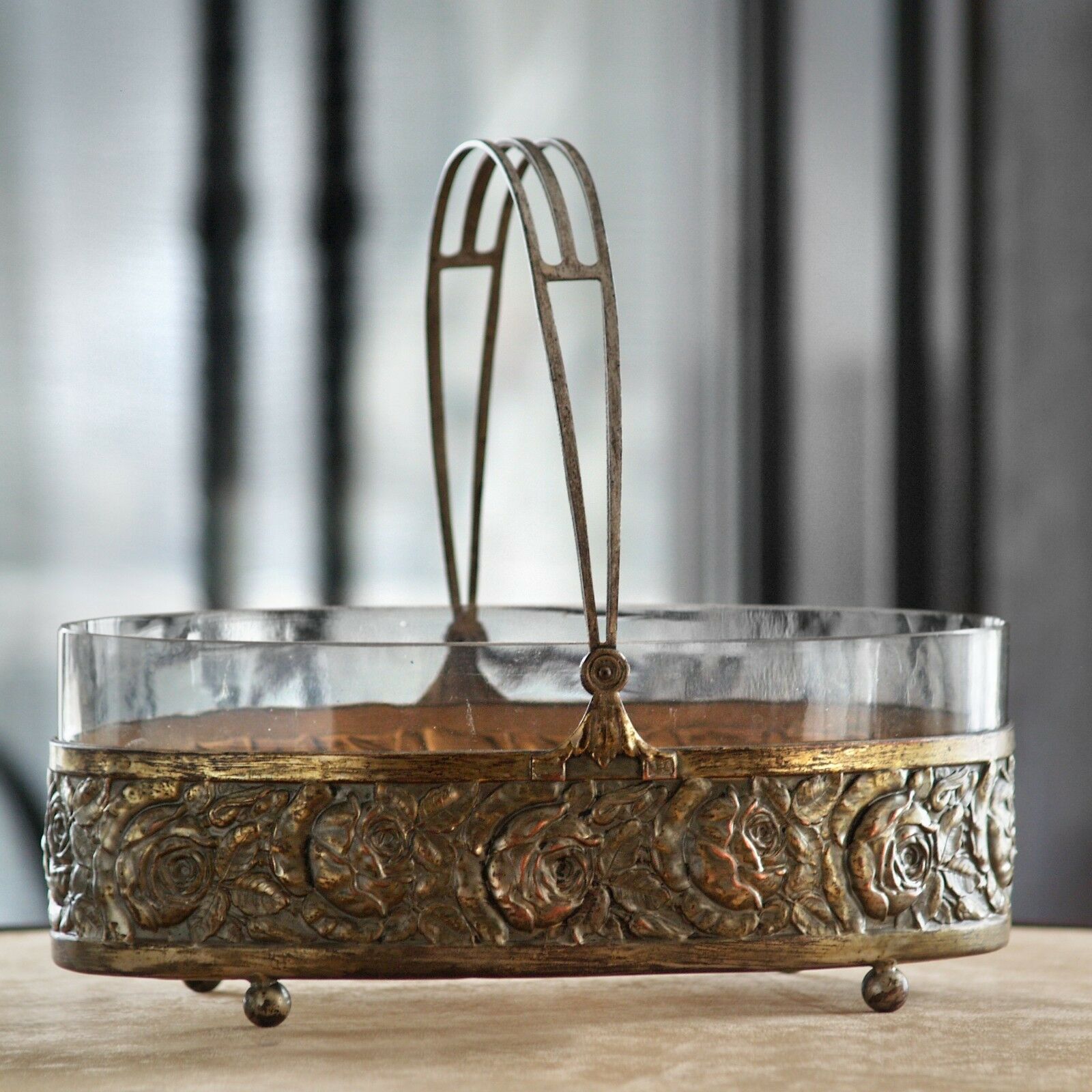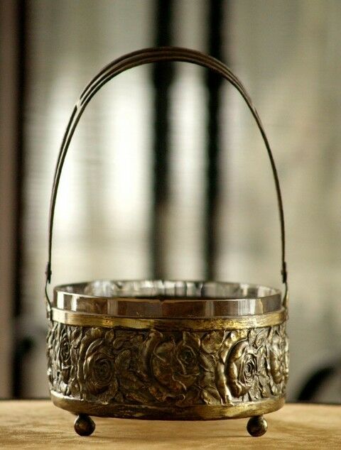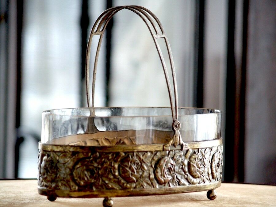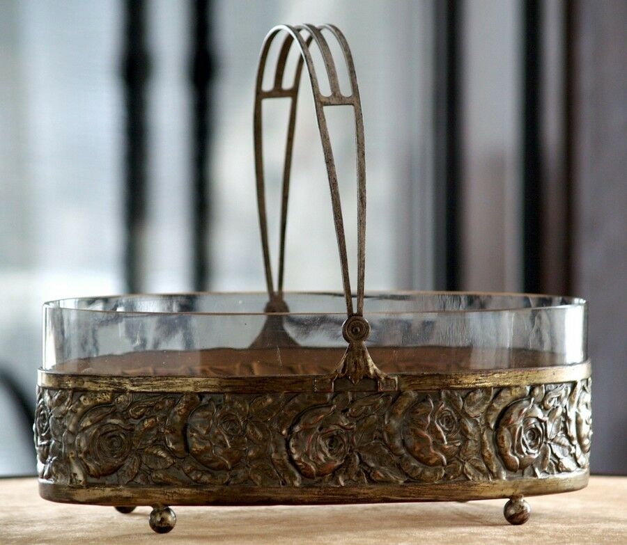 Produktinformationen "antike Schale Schüssel Tafelaufsatz * große Glasschale in silbernem Metallkorb"