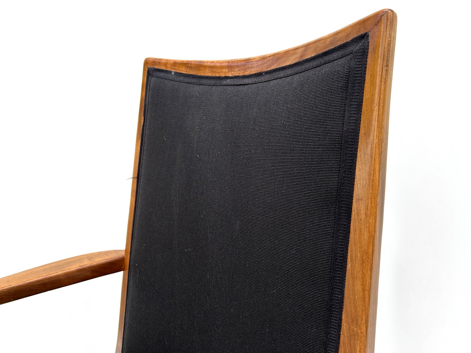 Diese stilvollen Thonet Armlehnsessel im Stil des Danish Modern aus den 1970er Jahren verkörpern zeitloses Mid-Century-Design mit klarer Linienführung und hoher Sitzqualität. Mit dem eleganten Holzrahmen, der schwarz gepolsterten Sitzfläche und Rückenlehne sowie der typischen Formgebung stehen sie für gehobene Wohn- und Objektkultur.
