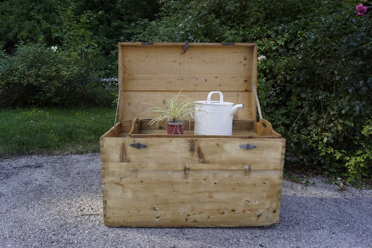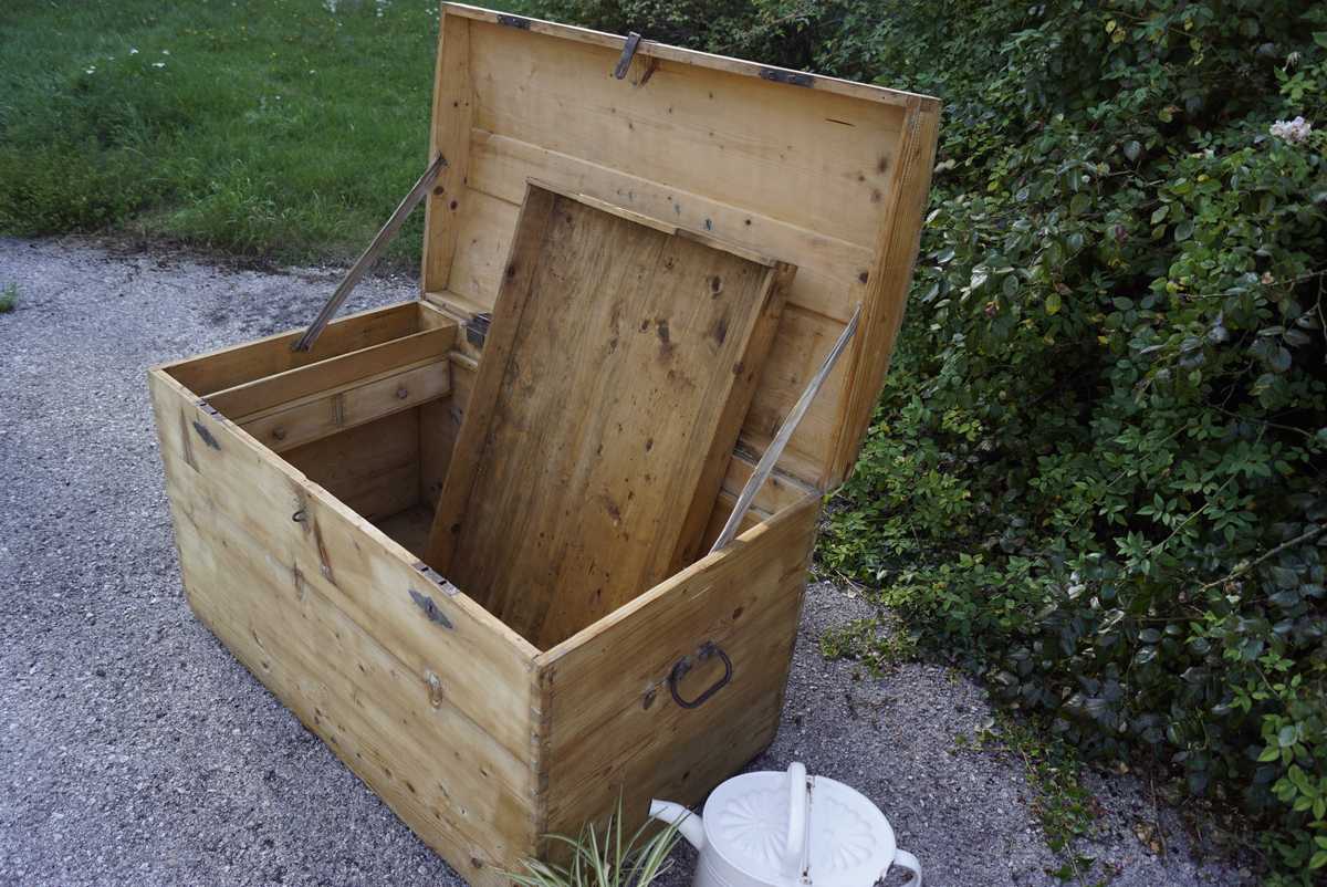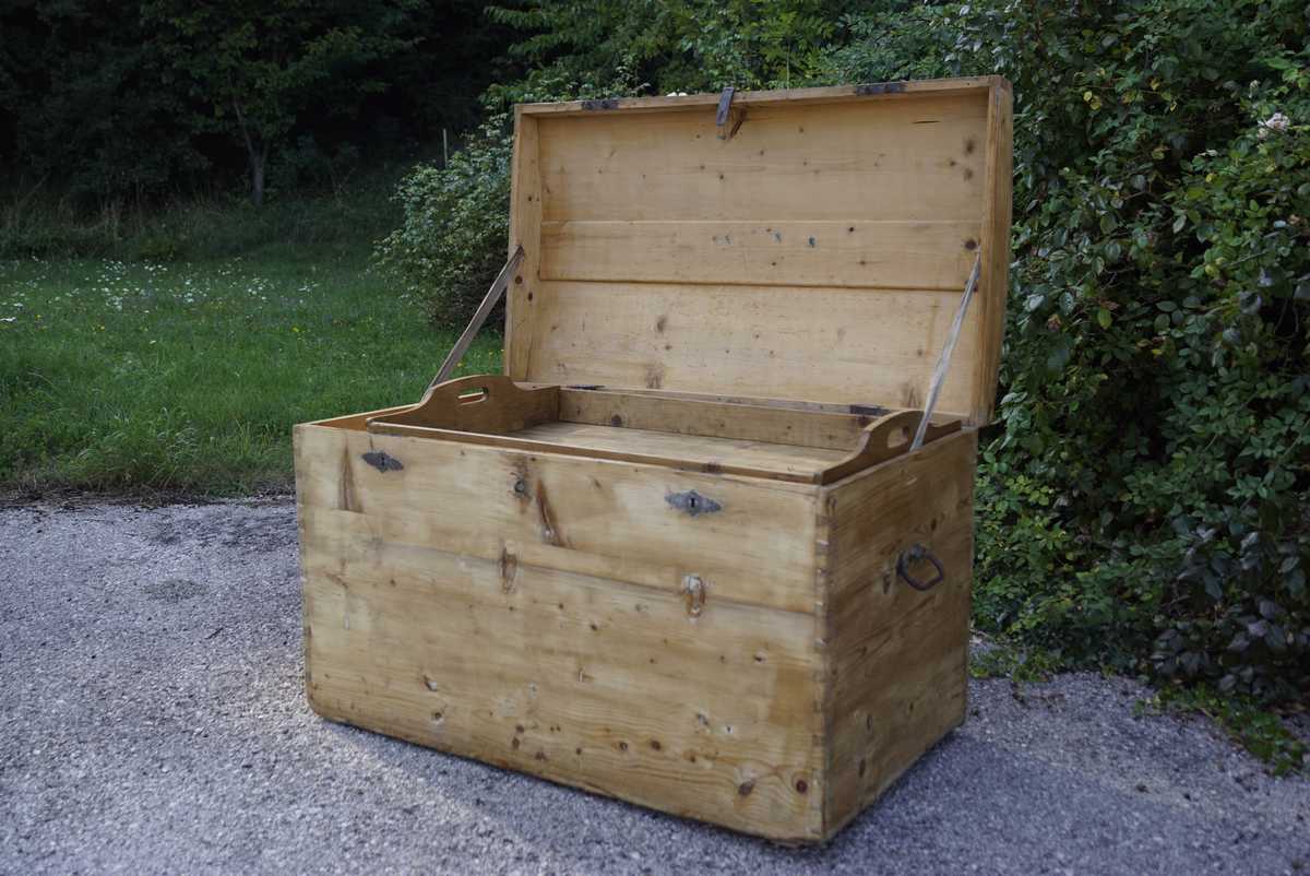Produktinformationen "Antike Truhe Weichholz Landhaus um 1900 Runddeckel"