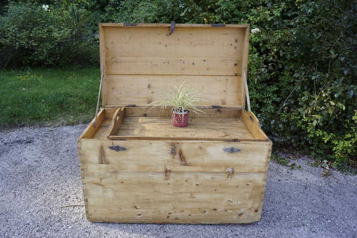 Antike Truhe Weichholz Landhaus um 1900 Runddeckel